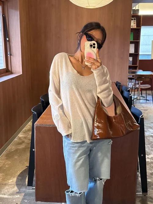Uネックベーシックルーズ長袖ニット・B1962971