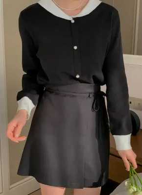 ショールカラー配色パール調ボタンカーディガン・p636740