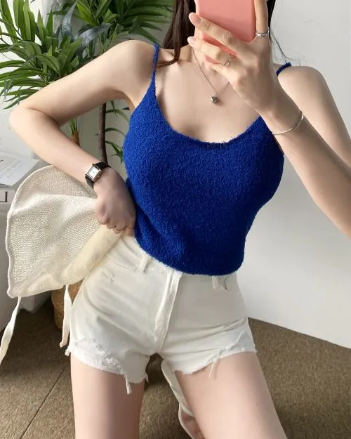 ラウンドネックファータッチクロップドキャミソール・B000502
