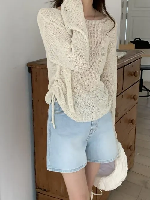 サイドドロストシアー長袖ニット・B001320