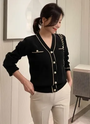 スナップボタンスリムリブカーディガン・p401269