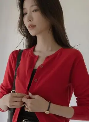 長袖ボタンラウンドネックスリムカーディガン・S1936311