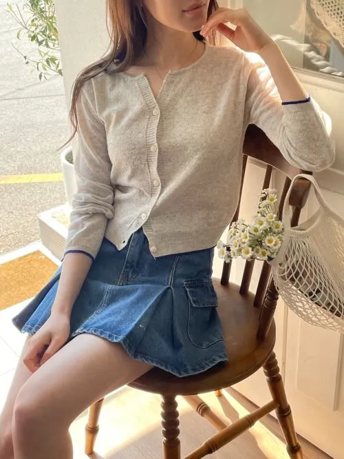 ニットドローストリングベーシッククロップドスリム長袖カーディガン・B1962974