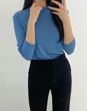 裏起毛ストレッチラウンドネック長袖スリムTシャツ・S1944003