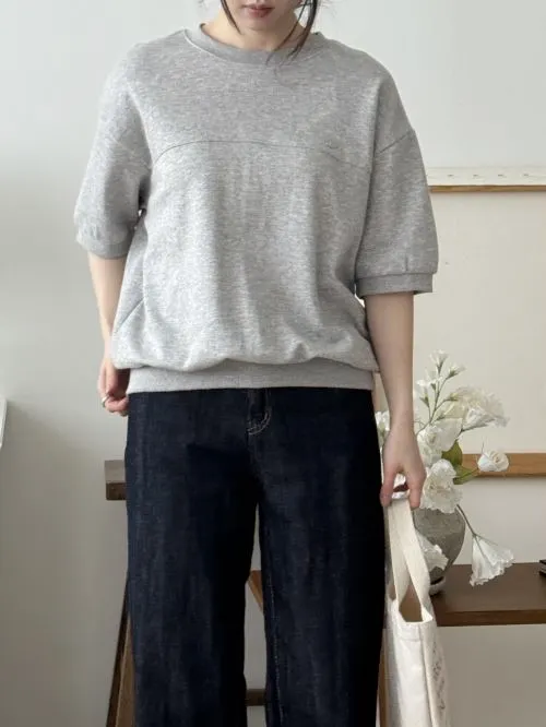 ラウンドネックパフスリーブルーズ7分袖無地スウェット・B1956032
