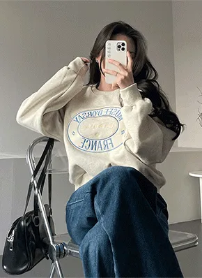 カラーネックボクシーレタリングスウェット・p709669