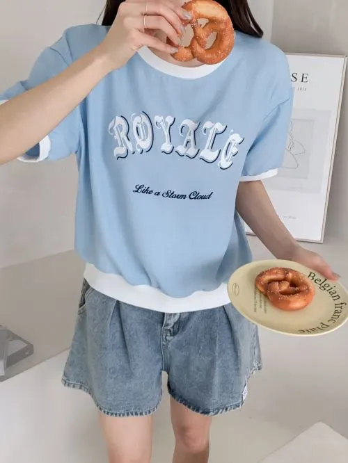 配色ルーズ半袖ドロップショルダーレタリングスウェット・B1963239