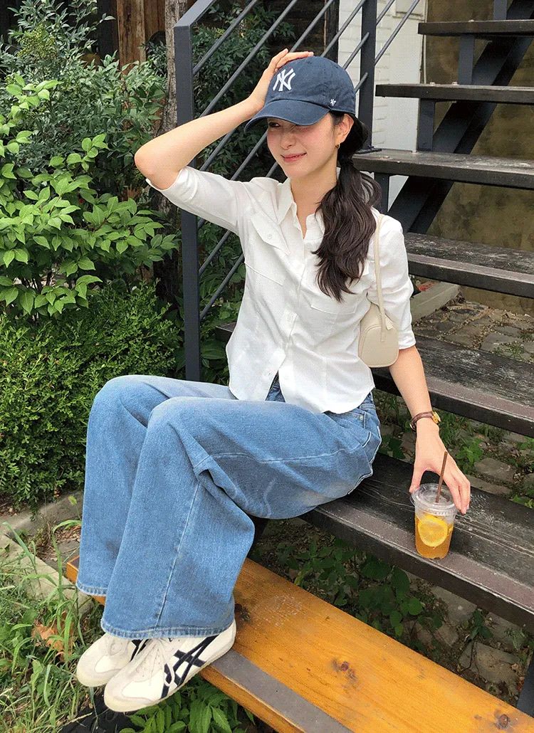ラインスリム7分袖アウトポケットラベルシャツ・S1931423