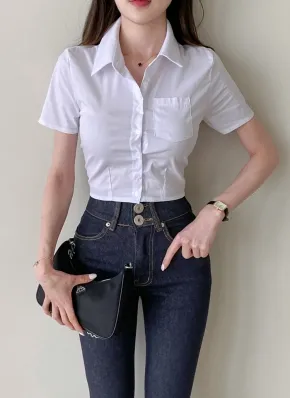 カラーネッククロップドシャツ・p428030