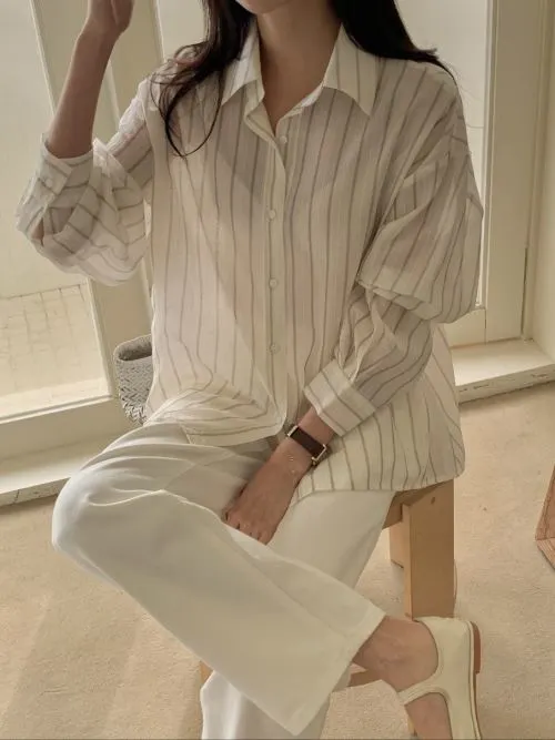 サイドスリットルーズストライプシャツ・p533485