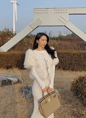 ファー配色ツイード半袖ジャケット・p466948