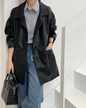レザー調ダブルボタンミドルジャケット・p710048
