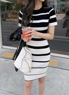 ハーフネックスリム半袖ミニボーダー配色ワンピース・S1960362