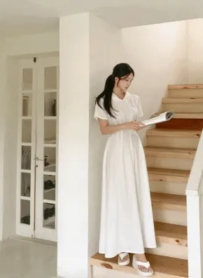 エンボススクエアネックパフ半袖ロングワンピース・p675583