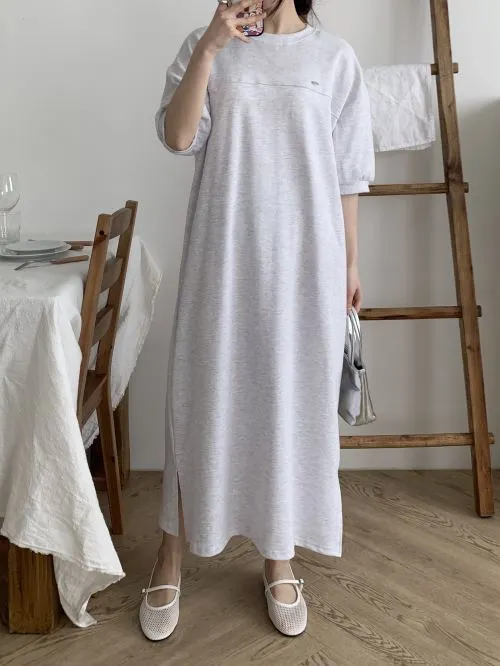 半袖ラウンドネックラインフレアAラインロングルーズ無地ワンピース・S1961504