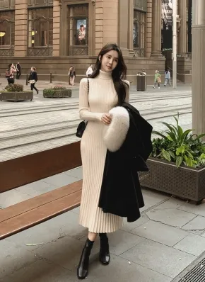 タートルネックニットロングワンピース・p694770