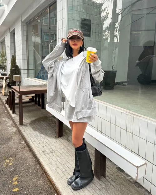 フードダブルジップウエストゴムルーズ長袖セットアップパンツカーディガン・B1959845