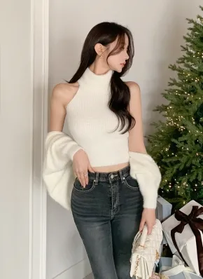 タートルネックアンゴラタッチニットノースリーブ&ボレロカーデSET・p700751