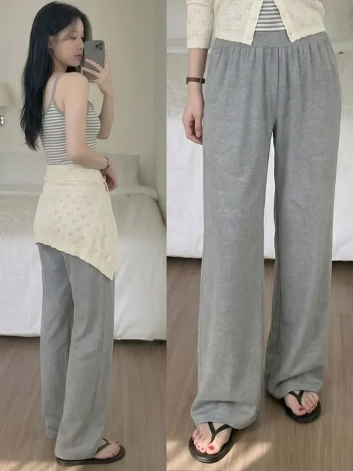 裏起毛ストレッチハイウエストウエストゴムロングワイドパンツトレーニング・S1944536