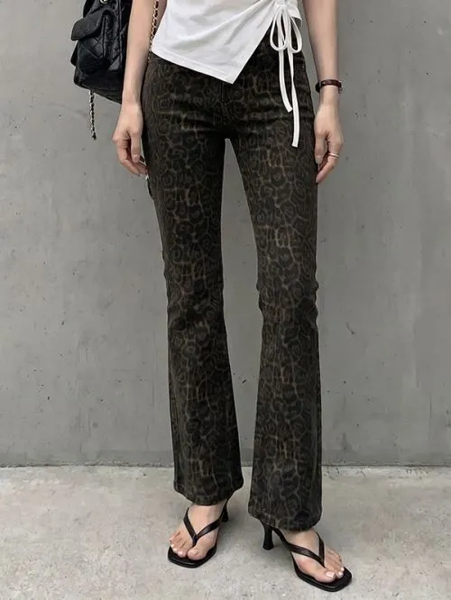 ポケットスリムブーツカットレオパードパンツ・B1967589