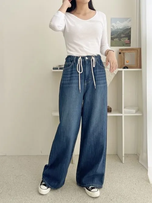 ホワイトドローコードワイドデニムパンツ・B008918
