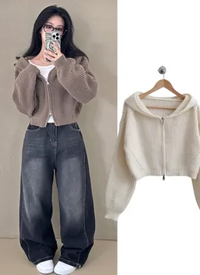 ダブルジップフードクロップドカーディガン・p685290