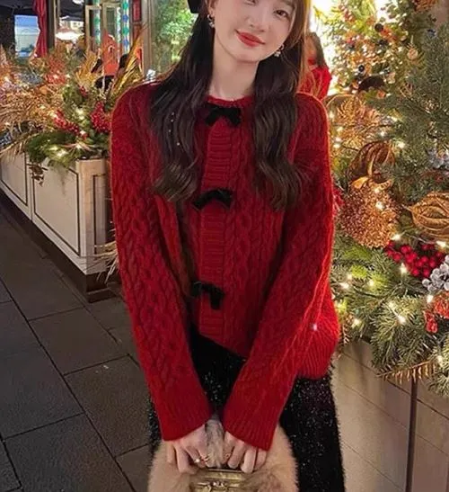 ベロアリボン付ケーブルカーディガン・B008127