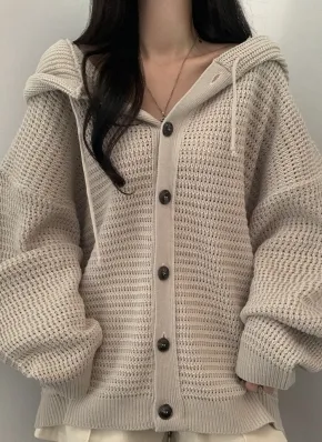 ボクシーフードニットカーディガン・p690663