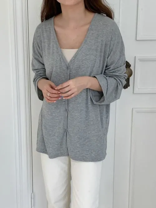 ツーボタンVネックシアーカーディガン・B011149