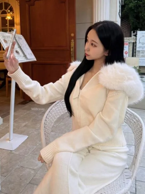 ダブルジップフードニットカーディガン・p690863