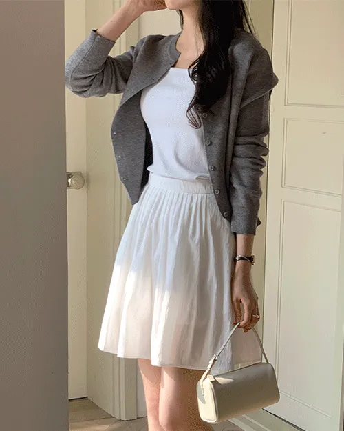 リブラウンドネックスリムシンプルカーディガン・S1959045