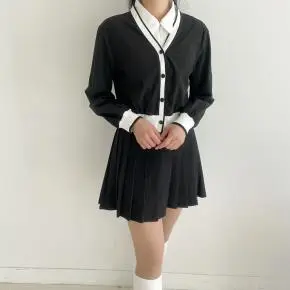 Vネッククロップド配色カーディガン・S1937376
