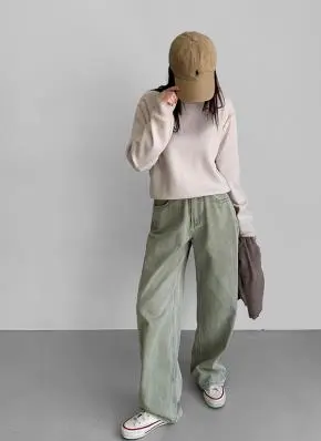 ラウンドネックオーバーサイズカラー無地ニット・S1937662