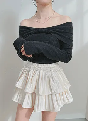 リブボタンオフショルダースリムニット・B1936627