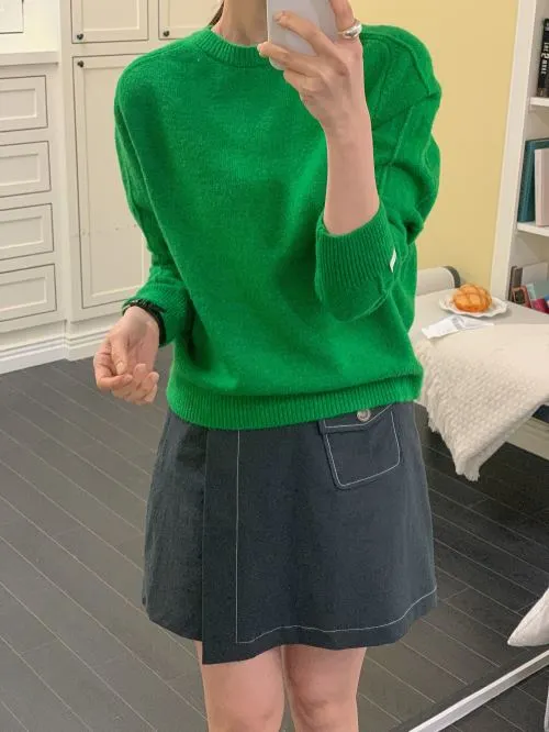 ラウンドネックベーシックシンプル無地カラーニット・S1953863