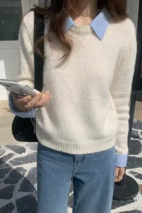 カラーラウンドネックレイヤード風カラーニット・B1934837