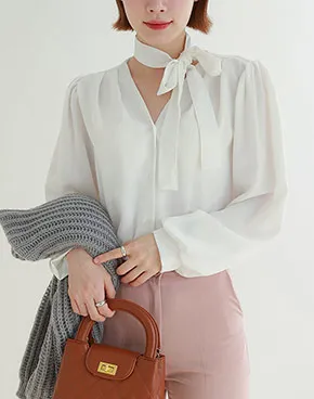 Vネックボウタイパフブラウス・p623516