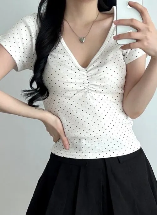 コットンVネックシャーリング半袖ドットTシャツ・B1962278
