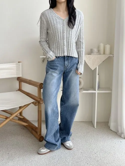 ライトブルーウォッシングワイドデニムパンツ