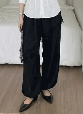 レースウエストゴムラップ調ワイドスカートパンツジョガーパンツ