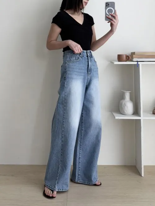 ライトブルーウォッシングワイドデニムパンツ