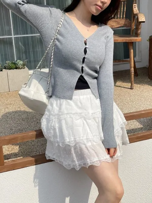 リブVネッククロップドスリムカーディガン