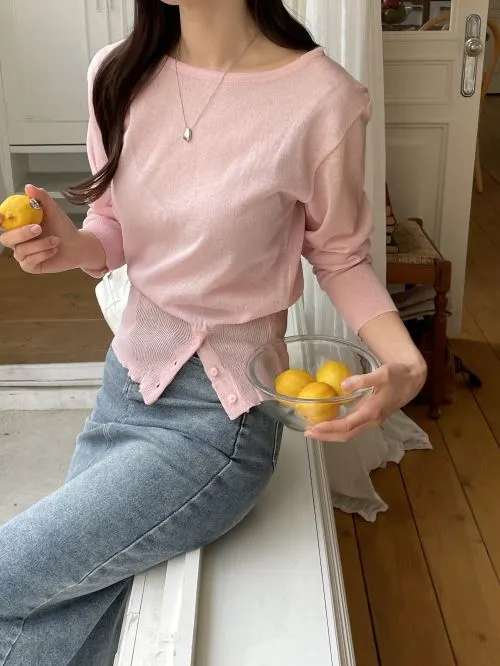 ボタンボートネックベーシック長袖ニット