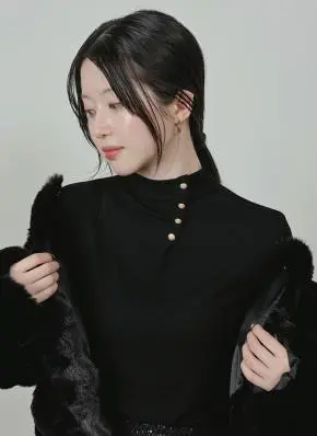 ハイネックゴールドボタンニット