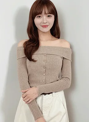 ボタンオフショルダーニット