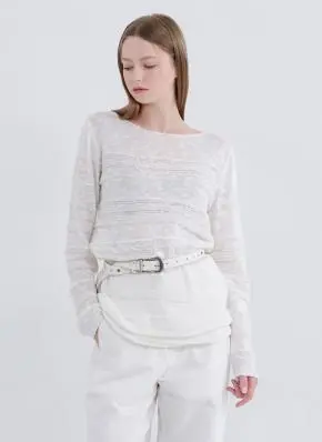 ラウンドネックベーシックスリム長袖ニットストラップ付