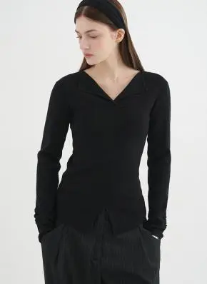 Vネックスリムツイスト長袖ニット