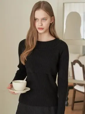 スクエアネックベーシックスリム長袖ニット
