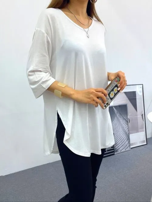 Uネックスリットベーシックルーズ半袖Tシャツ・B1960825