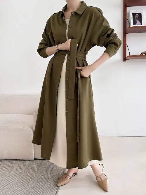 ベルト付Aラインシャツワンピース・b00577